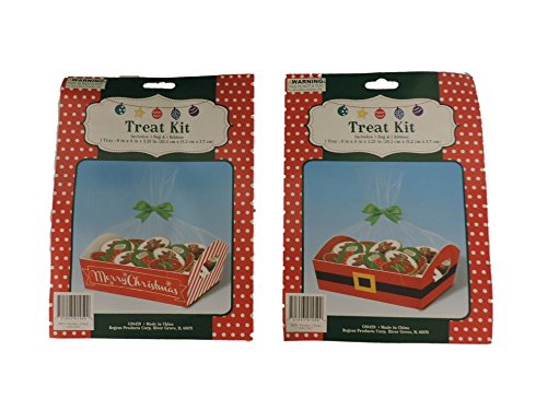 Set of 2 Treat Kits, 2 Different Styles (2 Bags/2 Ribbons) (Santa Belt & Merry Christmas)