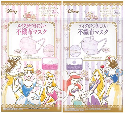 "Three pieces of nonwoven fabric mask to which Disney Princess makeup is difficult to attach" is a mask for a fashionable woman in which the motif of the story of Disney Princess is studded with the design of watercolor touch in the mask body.