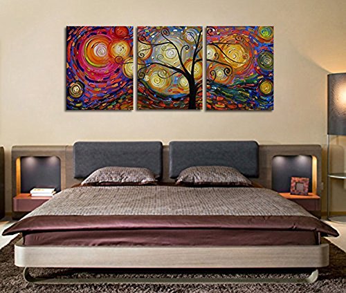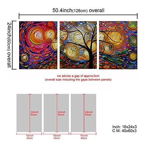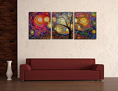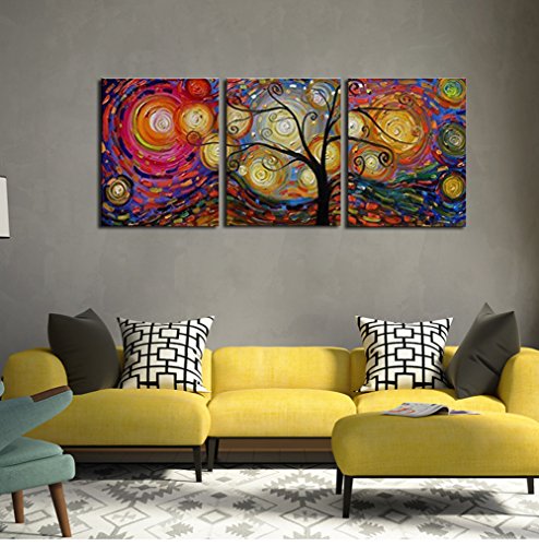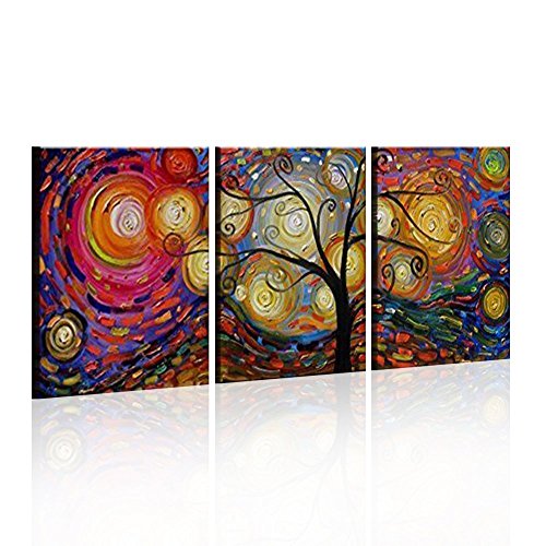 -. Title : FLY SPRAY 3-Piece 100% Hand Painted Oil Paintings Colorful Circle Tree Panel Stretched Framed Ready Hang Landscape Modern Abstract Canvas Living Room Bedroom Office Wall Art Home Decoration