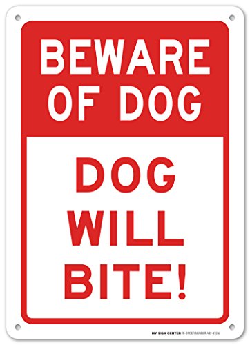 Beware of Dog - Dog Will Bite Sign, 14"x10" - .040 Rust Free Aluminum - Made in USA - UV Protected and Weatherproof - A82-372AL