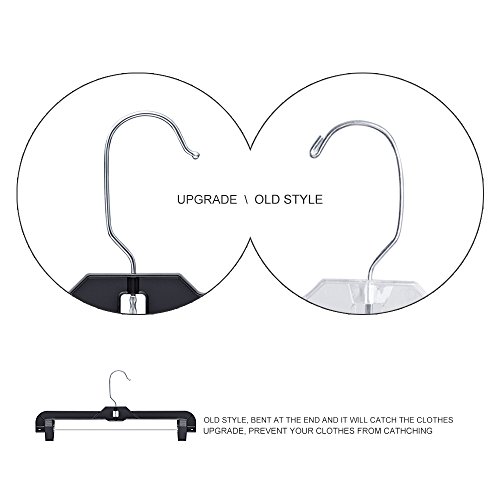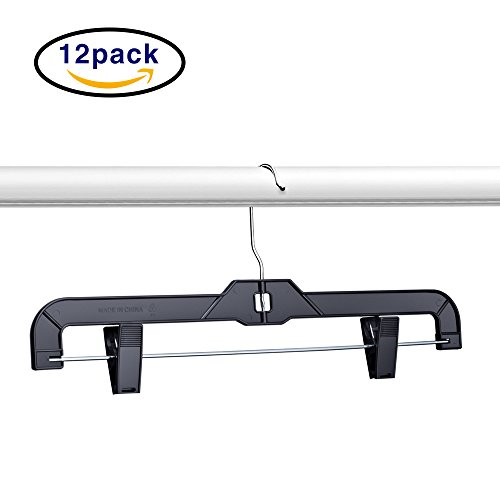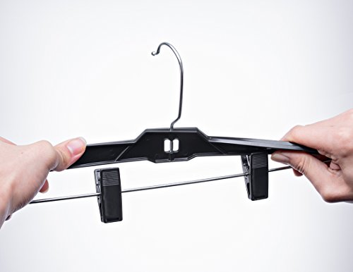 -. Title : HOUSE DAY Black Plastic Pant Hangers with Clips, 12 Pcs Pack 14 inch Skirt Hangers, Clip Hangers for Pants, Bulk Plastic Hangers