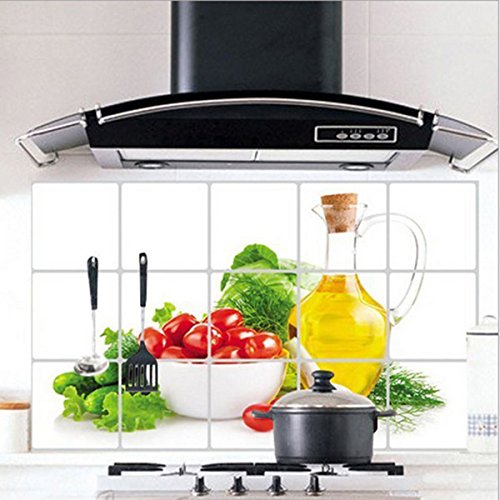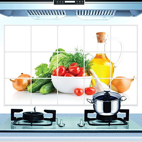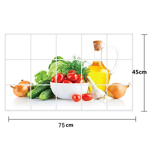 -. Feature : High temperature resistant, oil pollution prevention, abaxially with adhesive / Beautiful and artistic pattern, attached to the kitchen, both beautiful, and oil resistant. / Suitable for being stuck to any smooth surfaces: walls, furniture, accessories, tiles, mirrors and windows. / Once if you want to remove them , they don't leave residue when you peel them off carefully. / Package included: 1 pcs X Kitchen decoration sticker