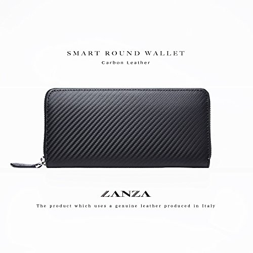 -. Title : 【LANZA】 ランザ イタリア製 カーボンレザー スマート ラウンド 長財布