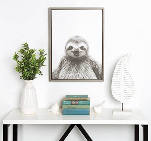 Display your love of animals in your home with this eye-catching adorable smiling sloth portrait. Printed and framed in the USA in Waunakee, Wisconsin, this framed floating canvas art will be a pleasure to look at every day in your living room, bedroom, nursery, or any room in the home. Printed on gallery wrapped canvas and framed with a gray woodgrain high quality polystyrene frame, this animal wall art has two sawtooth hangers already attached to the black inset back for easy wall display. The outer dimensions are 24 inches tall by 18 inches wide by 1.6 inches deep. Artist Biography: Simon Te (Russia) is a new artist, just getting his start 2 years ago. He is a self taught photographer and graphic designer. It's been very hard work, but he has come a long way with tutorials and practice. Simon draws inspiration from contemporary art and the freedom of expression. He likes the simplicity of lines and forms created by nature itself. Simon is anticipating an exciting future ahead.Feature