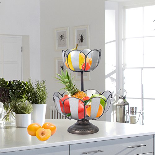 Studio : Adeco Publisher : Adeco Product Description About the Brand Adeco Trading is in the business of enriching your home experience through creative, stylish and yet affordable decor. Adeco Trading is an online platform offering a broad selection of traditional and contemporary merchandise including furniture, car accessories and home improvement products, expertly crafted and designed to last. We are confident that our products will capture your imagination, and help you turn your inspiration into action without hurting your wallet. Product description Organize your kitchen and serve your party food in style with this lovely basket rack! Each one of the 2 tiers is made of metal with a classic Silver finish for a Lotus look, and all 2 tiers are Suitable for displaying everything from Fresh foods like apples, pineapple, or like cupcakes and cookies. For a stylish kitchen storage solution that makes a fruit basket as well, this counter top storage rack is a perfect choice.