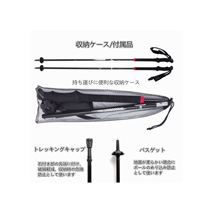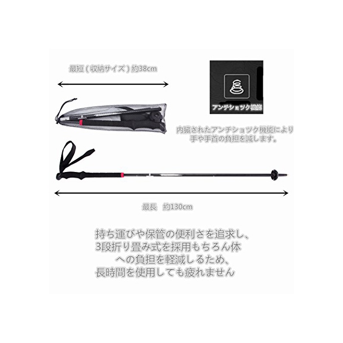 원본상품명: トレッキングポル 量245g アルミ製 登山ストック 最少38cm アンチショック機能 納ケス付き (2本1セット)