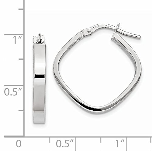 SPECIFICATIONS: Jewelry Type: Earrings, Earring Type: Hoop, Material: Primary: Gold, Material: Primary - Color: White, Material: Primary - Purity: 14K, Length of Item: 21mm, Width of Item: 2mm, Plating: Rhodium, Earring Closure: Wire & Clutch