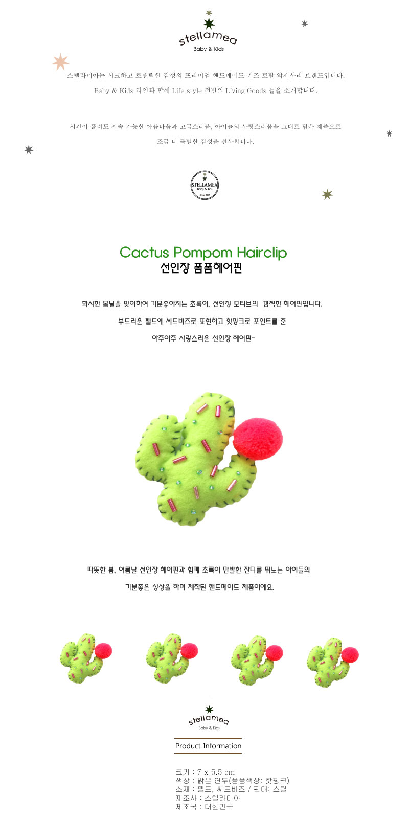 기분좋은 그린컬러의 선인장 모티브 헤어핀입니다.