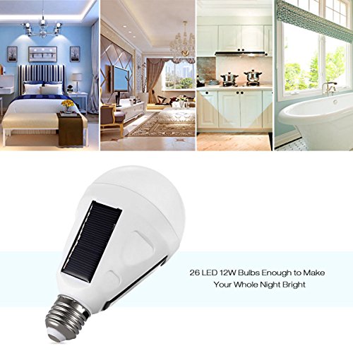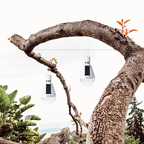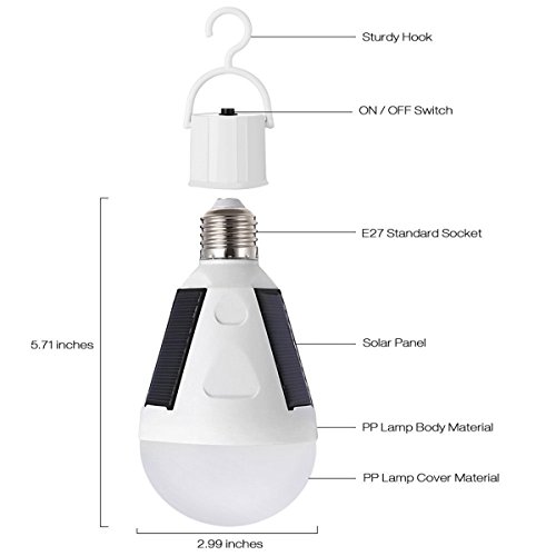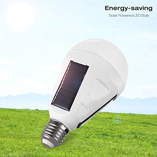 - Energy-Saving & Eco-Friendly - 6500K LED bulb, it saves 80% energy than incandescent bulbs, up to 8000 hours lifespan. In-built with 3 solar panels, recharging in sunlight 1 day and lighting 3 hours, after fully charged by home electricity can continually lighting up to 6 hours