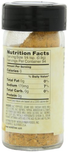 -. Feature : Pack of six, 3-ounces per bottle (total of 18 ounces) / Cheese flavored seasoning / Blend of various herbs and spices / SP.R.Inkle on salads and before cooking on fish or meats