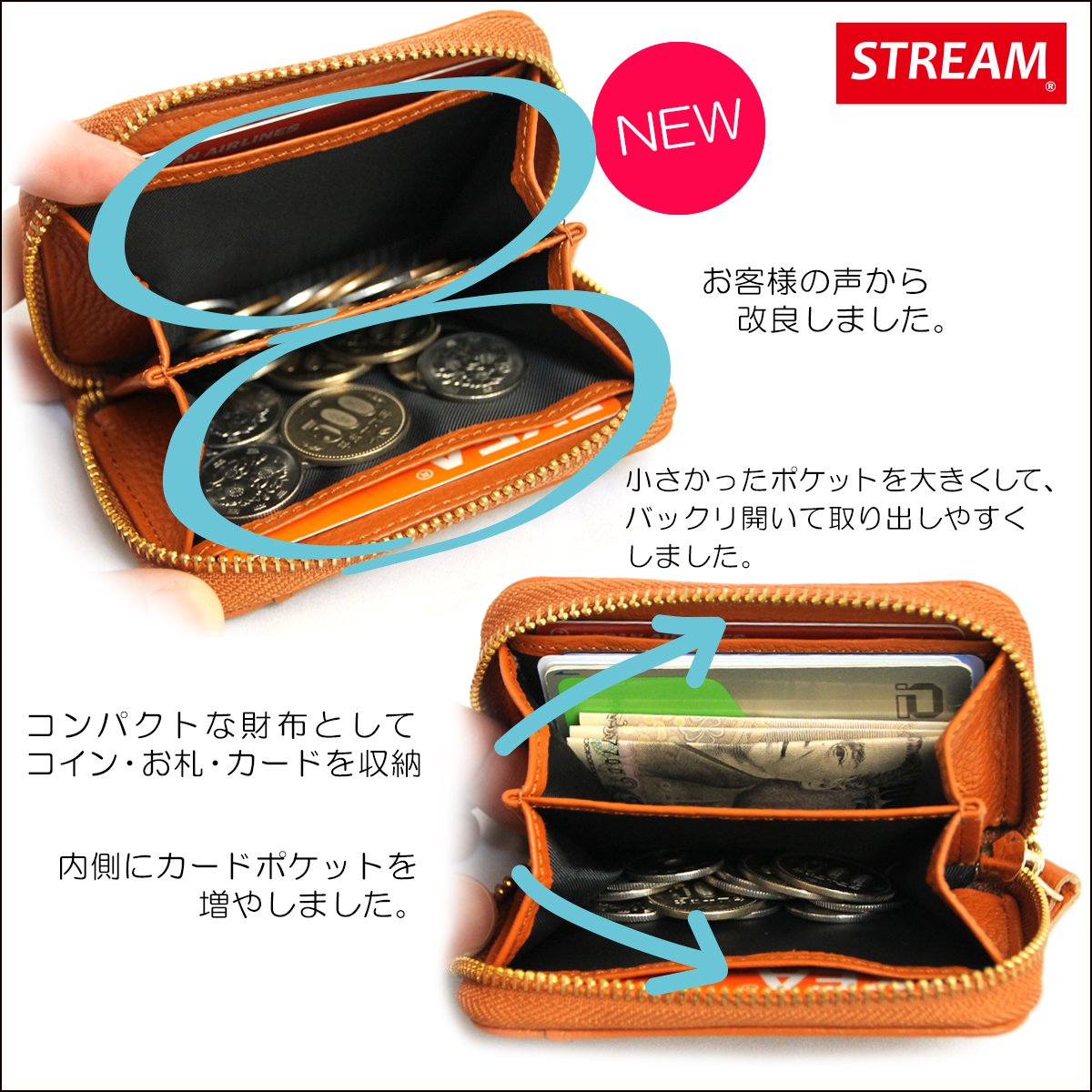 Compact and functional coin case with genuine leather use