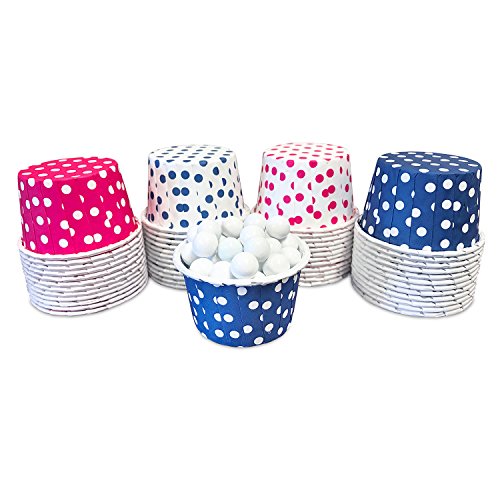 Candy Nut Mini Baking Paper Treat Cups - Hot Pink Navy Blue and White Dot - 2 x 1.5 Inches - 48 Pack