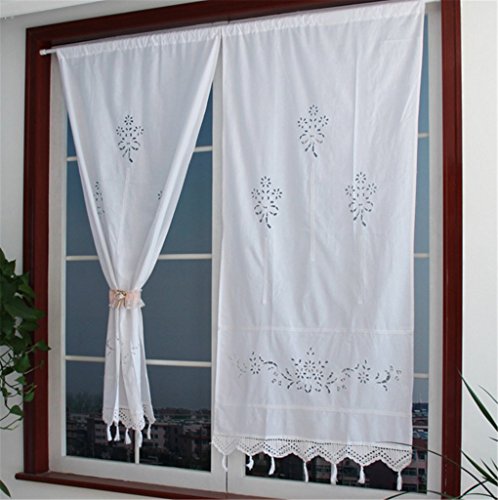 ZHH Handmade Cotton Crochet Lace Curtain Hollow Flower Curtain 27 by 59-Inch(One Piece), White