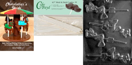 Cybrtrayd 45St50Bk-N027 'Mermaid Lolly' Nautical Chocolate Candy Mold with 50 4.5-Inch Lollipop Sticks and Chocolatier's Guide