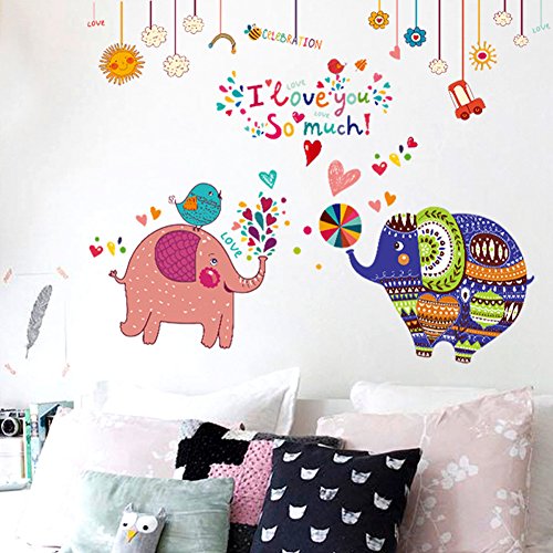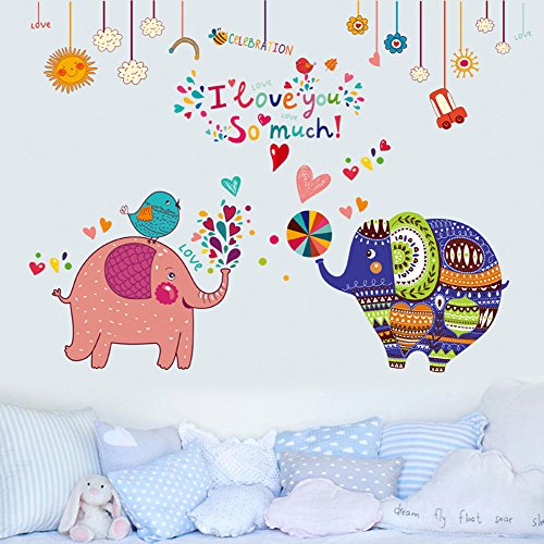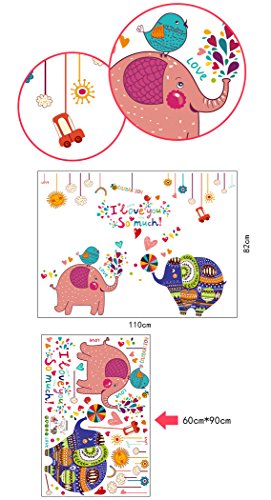 -. Title : Wallpark Cartoon Cute Elephant Couple Removable Wall Sticker Decal, Children Kids Baby Home Room Nursery DIY Decorative Adhesive Art Wall Mural