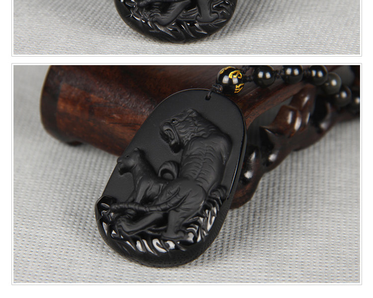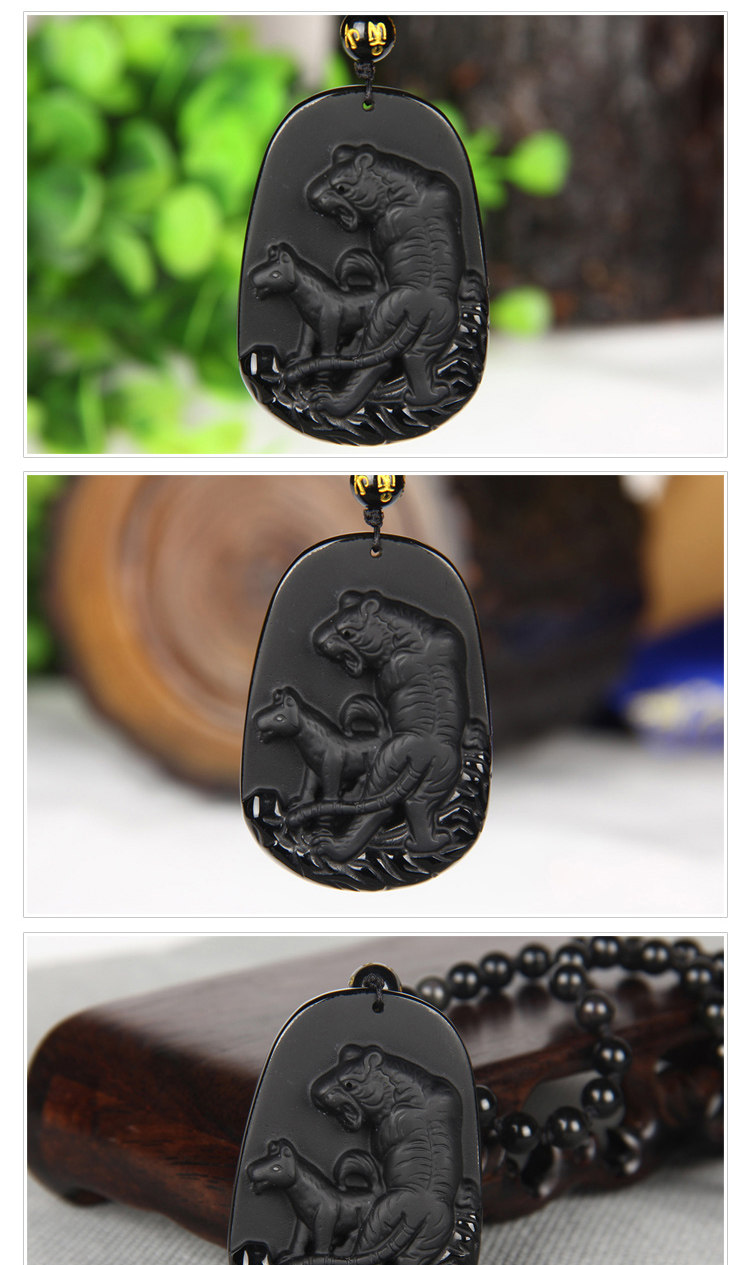 开光戌载寅木属狗化太岁吊坠 猛虎震塔吉祥物天然黑曜石男女款