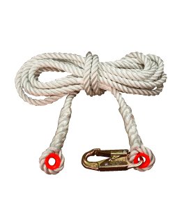 -. Feature : 3-Strand rope lifeline / Snaphook and thimble / Made of Nylon / Measures 5/8-inches diameter by 50-feet length