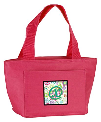 Caroline's Treasures CJ2011-XPK-8808 Letter X Flowers Pink Teal Green Initial Insulated Lunch Bag, Large, Multicolor