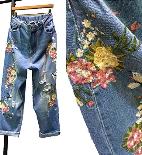 -. Title : P53 Women Embroidered Boyfriend Jeans Harem Baggy Pants Casual Low Crotch Elastic Waist Poled