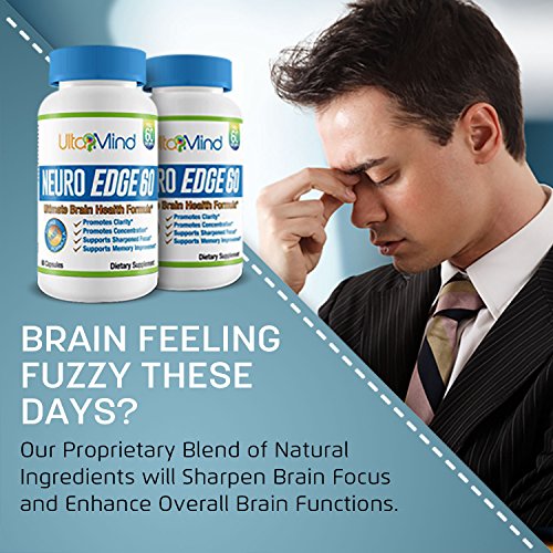 NEURO EDGE 60 Extra Strength Brain Supplement for Laser Like Focus, Super Clarity & Memory - Mental Performance Nootropic - Peak State Cognitive Booster...