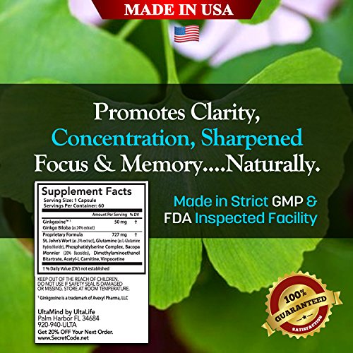 CLINICALLY PROVEN INGREDIENTS INCLUDING SUPER GINKGO BILOBA TO ENHANCE MENTAL PERFORMANCE - Boost your focus, clarity and concentration with physician formulated ingredients including St. John's Wort, L-Glutamine, Ginkgo Biloba, DMAE and more. This natural nootropic is formulated to increase circulation in the brain and improve overall function, enhance cognition and support healthy cerebral metabolism.