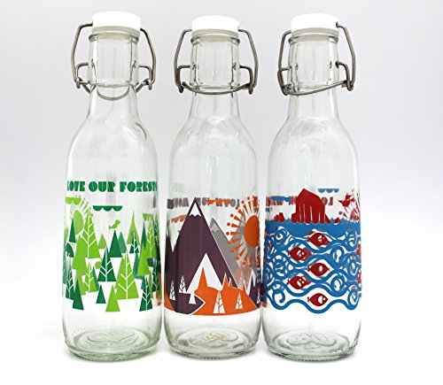 -. Feature : Reusable glass water bottle / Ceramic swing-top lid / Fun designs