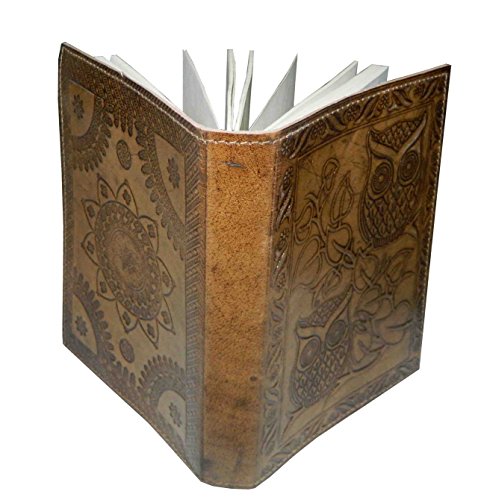 Embossed with Owl motifs on front side and random design on back side, this handcrafted notebook comprises of 96 blank pages of 125 Gsm off white handmade paper.