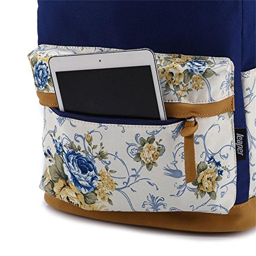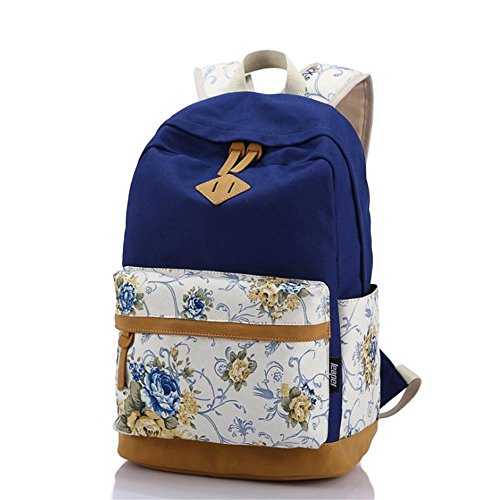 -. Title : Korean Style Canvas Flower Floral Casual Daypacks College Student Satchels, Navy