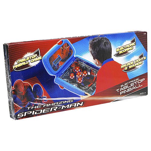 Studio : Jakks Publisher : Jakks Binding : Toy Product Description The Amazing Spider-Man Table Top Pinball Game features electronic lights, sound effects and LCD scoring. Launch your ball into action and watch the ball as it ricochets off the bumpers and obstacles. Rack up as many points as you can on the LCD scoreboard. Play alone or challenge your friends to see who will get the highest score. 0