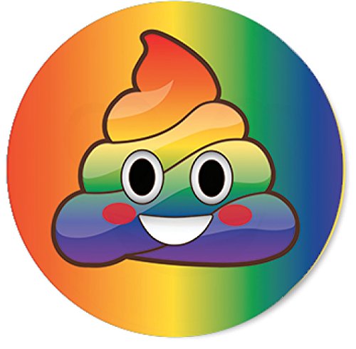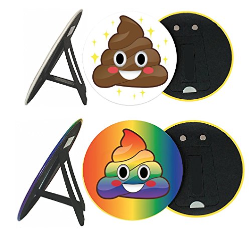 - 2 Really BIG 6 Inch Emoji Face Funny Happy Poop Face & Unicorn Rainbow Poop Smiling Face, High Gloss Resistant Finish, Full Color Face Button