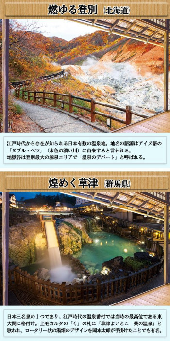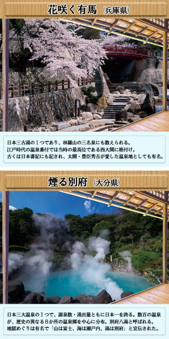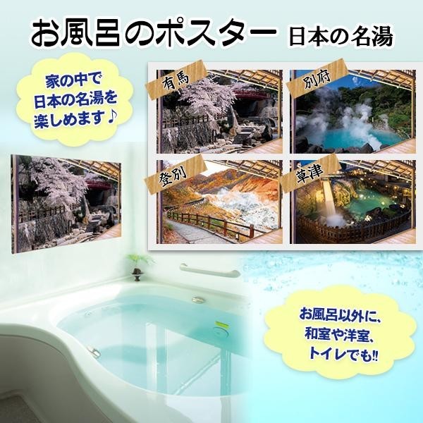 | 水をつけて貼るだけなので、何度でも貼りなおすことが出来ます。日本の名湯の風景のおかげで、いつもの自宅のお風呂も広く感じていい気分♪両面テープが付属しておりますので、お部屋の壁面に貼ることも可能です。 |