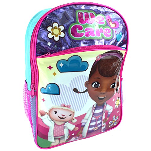 These awesome Disney backpacks can easily carry books, gym clothes, pencils and more! These day packs feature a roomy main compartment, and a front zip compartment that is perfect for smaller supplies. The book bags can be hung up when not in use by the webbed locker loop. These back packs are designed in durable fabric with adjustable padded shoulder straps and a padded back. This bag contains two side mesh pockets. Go to school, work, the gym, or anywhere with cool images of your favorite licensed Disney characters: Doc McStuffins, Arlo, Spot, Mickey, Sheriff Callie, Lightning McQueen, Mater, Finding Dory, Nemo, and more! Perfect back to school choice for any Disney fan! Choose one or collect them all!Feature