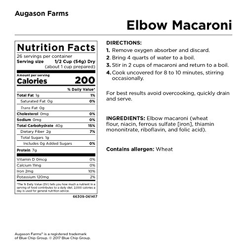 Augason Farms Elbow Macaroni Pasta 50 oz #10 Can
