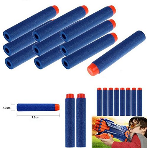 - Feature : Material: Plastic + Foams / Foams Size: 7.2x1.3cm / These Elite Darts are specially designed to work with the new N-strike Elite Rampage / 100% brand new and high quality / Note: The head of each bullet is made of plastic, so a little bit hard, please don't shoot at people directly to prevent hurt ,especially do not aim at the people's face, to prevent injury to the eye.