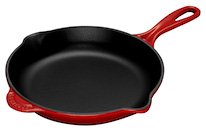 Cast iron skillets have long been treasured kitchen staples for stovetop frying and oven baking � and the Iron Handle Skillet from Le Creuset delivers that same level of reliable performance time and time again. With a durable satin black interior enamel and brilliant exterior enamel, the Iron Handle Skillet is protected inside and out from chipping, cracking and excessive wear. Over time, the skillet's slightly abrasive interior develops a natural patina that is ideal for searing and frying.