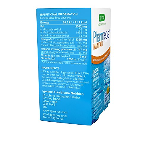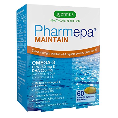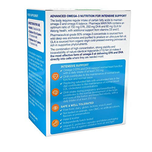 Pharmepa MAINTAIN Super Strength Omega-3 Wild Fish Oil with GLA & Vitamin D3, 750 mg EPA & 250 mg DHA per serving, fast-acting rTG...