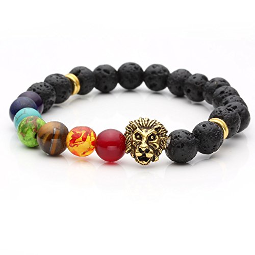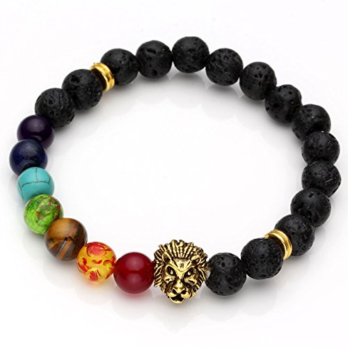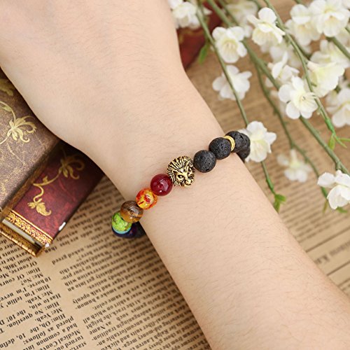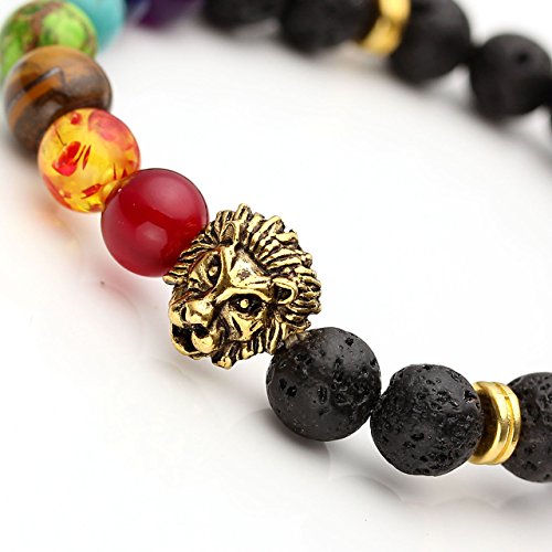 - Title : JOVIVI® 7 Chakra Stone Bracelet Lava Stone Crystal Reiki Healing Balancing Round Beads - Lion Head