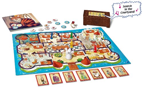 -. Feature : Players work cooperatively to uncover clues and defeat the evil wizard! The game sharpens communication, reinforces memory, tactical and team-building skills. / Most successful board game in 2008 and 2009 in Germany! / Awards: Disney FamilyFun Toy of the Year 2011, Creative Child Magazine Game of the Year 2011, The National Parenting Center Seal of Approval 2011, Childrens Game of the Year 2008 in Germany / Contents: game board, doors (to place on the board), electronic chest, playing pieces (red, yellow, green, blue), ghost, cat (game board), food tokens, key tokens, 10 suspect cards, die, ring, ring base