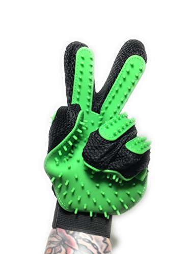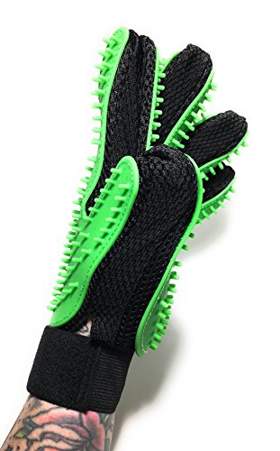 - UNIVERSAL FIT- Our PATENT PENDING petting glove is unique. It is one glove that is bothLEFT AND RIGHT HANDED. Unlike mitt designs the glove design gives you control over pressure and allows you to use one or two fingers in small areas. This is perfect for small animals with hard to reach spots and for people who have hand or wrist problems. When one hand is tired; simply remove the glove and place on the other hand and continue removing all of that unwanted fur.