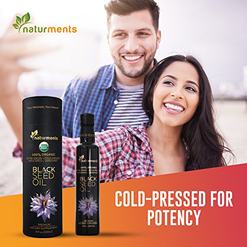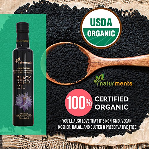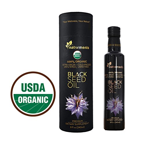 Certified organic by the USDA, our premium-grade black seed cumin oil is cold pressed to preserve the seeds' powerful nutritional and therapeutic properties. Suffering with baldness, eczema, psoriasis, joint pain, allergies, dry skin, low energy, lack of libido, or sexual dysfunction? Herbalists, naturopaths, and others praise organic black seed oil. According to their experiences, black seed cumin oil (also referred to as Nigella Sativa oil) may contribute to healthy hair, skin, nails, libido, weight, and more. Naturments Black Seed Oil brings you the renowned health benefits of black cumin seed in a distinctly pure and effective form. Cold pressed to draw out the most potency, our black seed oil is rich in fatty acids, antioxidants, proteins, and vitamins as well as Nigellone and Thymoquinone, compounds thought to be responsible for its therapeutic properties. 100% USDA Certified Organic Cold-pressed from non-GMO cumin seeds Made in an ISO 22000, cGMP, HACCP-certified production facility Safe for internal use as a dietary supplement Free of hexane and preservatives No added colors or flavors Vegan, kosher, halal Non-drip pour spout for easy dispensing Dark glass bottle to preserve freshness Your Naturments real black seed oil extract comes in a light-blocking glass bottle designed to extend the product's shelf life on potency. Your purchase includes our complimentary e-booklet, "The Miraculous Seed." Read all about how you can use pure black seed oil at home to support your healthy metabolism, weight, hair and nails, and aid in your overall wellness and vitality.* *These statements have not been evaluated by the Food and Drug Administration. These products are not intended to diagnose, treat, cure, or prevent any disease. 0 |