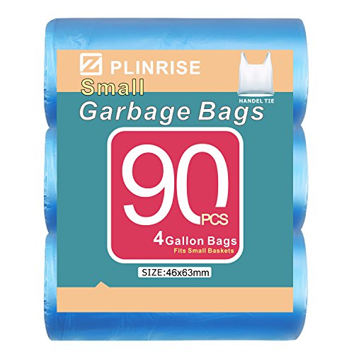 Plinrise Garbage Trash WasteBasket Bags With Handle-tie,4 Gallon Rubbish Bags,90 Counts,Blue Color