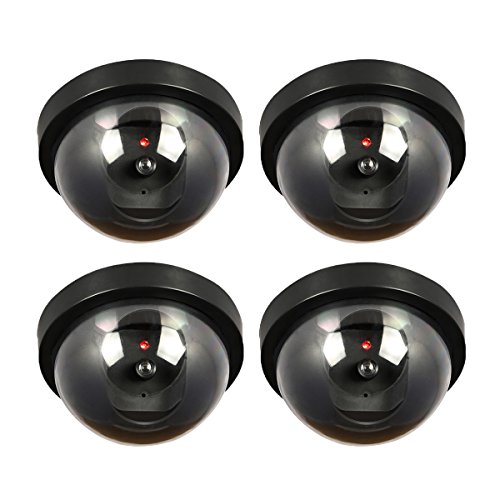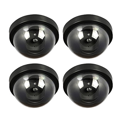 JOOAN 4 Pack Fake/Dummy Dome Security Camera Hemisphere Type Home/Store Surviellance Equipment with Twinkle Red Led