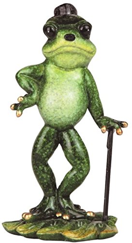 StealStreet SS-G-61191 Green Frog on Lilly Pad with Cane & Hat Figurine, 5.25"