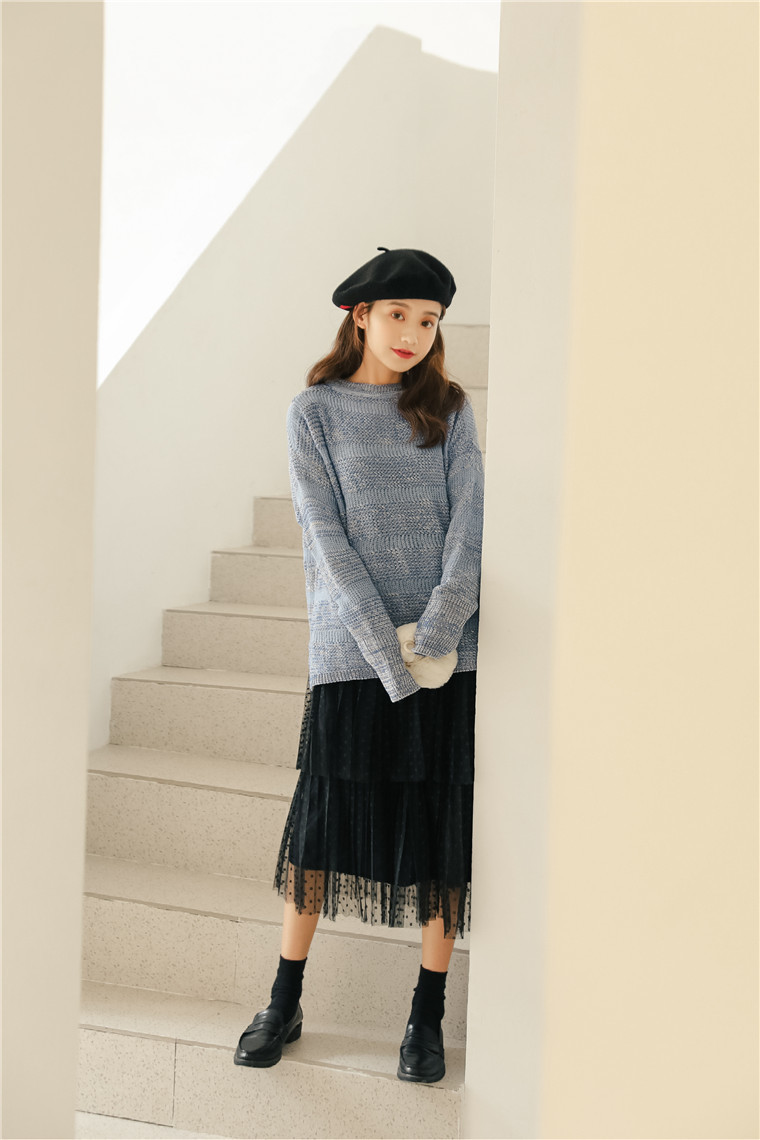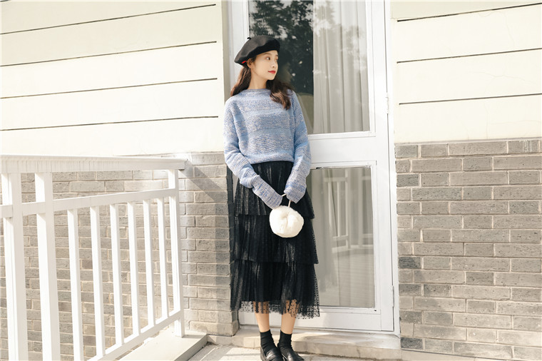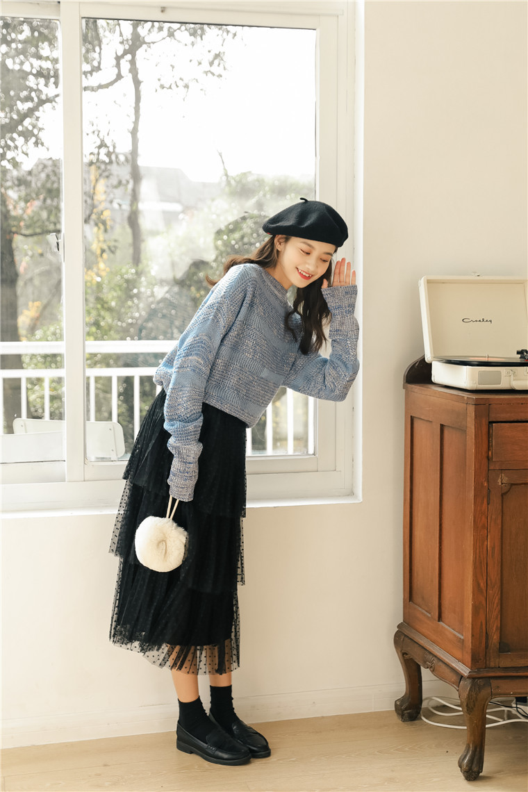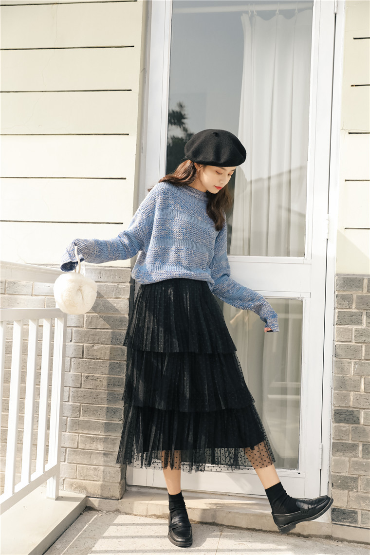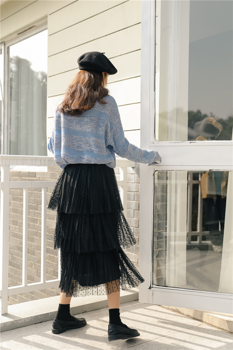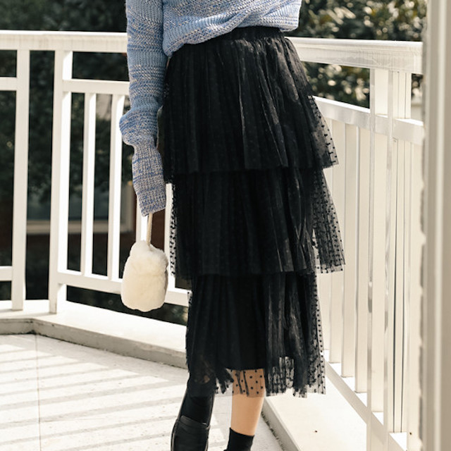 三段に重なったデザインがボリューム感を出しながらも、ハイウエストで縦ラインを作り、すらっとした印象に仕上げてくれます。