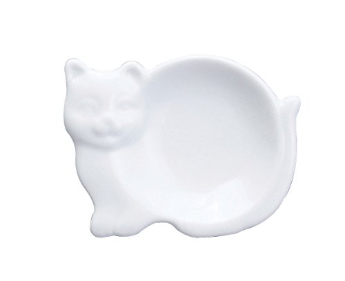 HIC Cat-Shaped Tea Bag Holder and Resting Caddy, Fine White Porcelain, 3.75-Inches