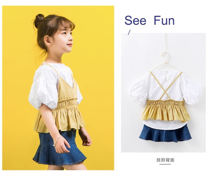 【製品仕様】■商品説明・上下セットでおしゃれに着こなす!~・パフ袖、フレアスカートがとても可愛いデザイン!~♪・お出かけにぴったり!・3点セット■サイズ/寸法平置採寸半袖トップス【90】肩幅:35cm バスト:37cm 総丈:40cm【100】肩幅:37cm バスト:38cm 総丈:43cm【110】肩幅:38cm バスト:39cm 総丈:45cm【120】肩幅:40cm バスト:41cm 総丈:48cm【130】肩幅:41cm バスト:43cm 総丈:50cmキャミソール【90】総丈:36cm【100】総丈:38cm【110】総丈:40cm【120】総丈:42cm【130】総丈:44cm ボトムス【90】ウェスト:22cm 総丈:25cm【100】ウェスト:22cm 総丈:27cm【110】ウェスト:24cm 総丈:29cm【120】ウェスト:24cm 総丈:31cm【130】ウェスト:26cm 総丈:33cm■素材/材質コットン■色ホワイト