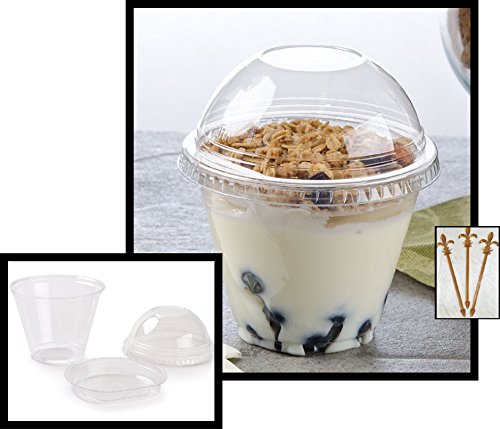 Pack of 25 Clear Plastic Parfait Cup 9 oz with Insert and Dome Lid