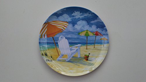 Studio : CD Designs Publisher : CD Designs Product Description Melamine plastic luncheon plates with a beach scene of beach chair, umbrellas and sand toys. Lightweight, high-impact melamine plastic is dishwasher safe but not recommended for use in the microwave. Set of two plates. 0