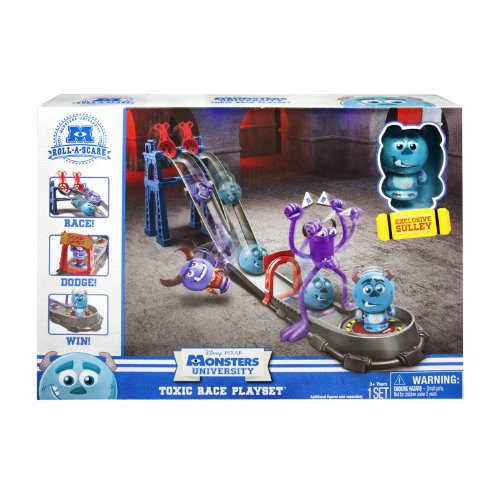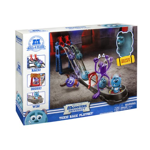 Studio : Spin Master ReleaseDate : 2013-05-10 Publisher : Spin Master Binding : Toy Product Description Welcome to the Toxic Race in the Monsters University annual Scare Games! Ready, set, Go! The Toxic Race Play Set lets you race solo and against a friend! Race any 2 Roll-A-Scare characters down the track. But watch out! The Glowing Urchin tunnel will stop you dead in your tracks! Be the first one to cross the “monsterized-Inch finish line and your character will spring open to win the Scare Games! Inside you’ll discover an exclusive Roll-A-Scare Sulley character you can’t find anywhere else. Help Oozma Kappa win the annual Scare Games with the Monsters University Toxic Race Play Set! 0