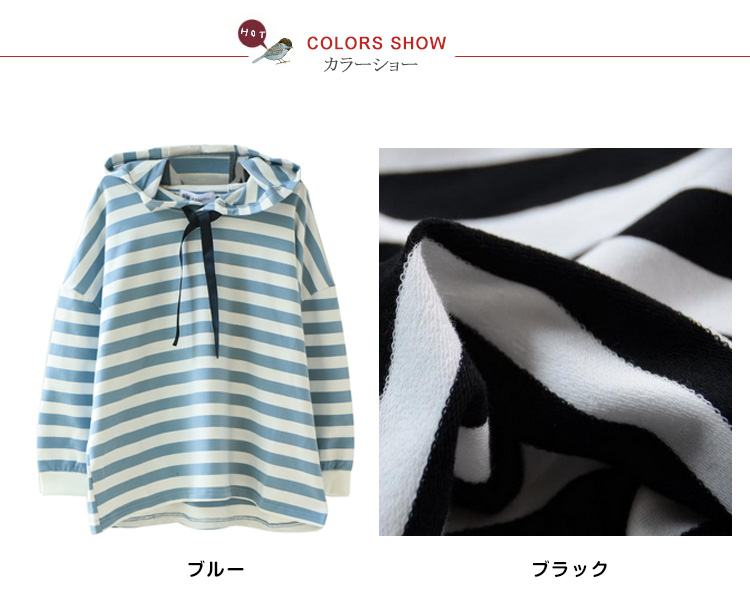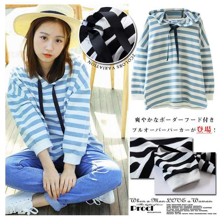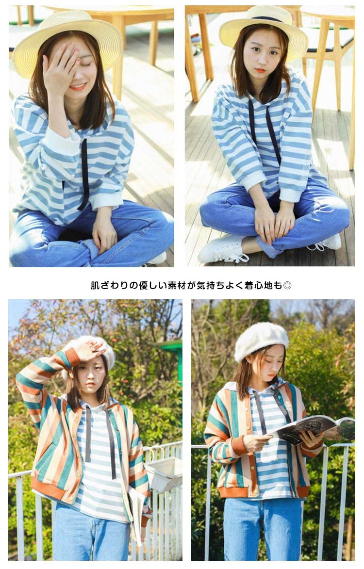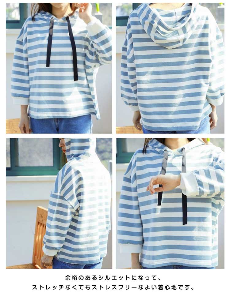 | 爽やかなボーダーフード付きプルオーバーパーカーが登場!定番のフーデッドタイプで紐使いのもアクセントに肌ざわりの優しい素材が気持ちよく着心地も◎余裕のあるシルエットになって、ストレッチなくてもストレスフリーなよい着心地です。シンプルなデザインのプルオーバーパーカーはこれからのシーズンに大活躍してくれること間違いなし! | |